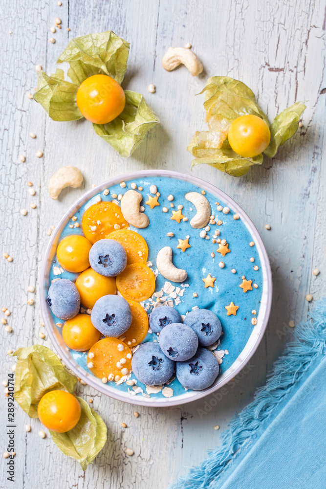 Healthy blue spirulina smoothie bowl