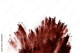 Brown color powder explosion on white background. Colored cloud. Colorful dust explode. Paint Holi.