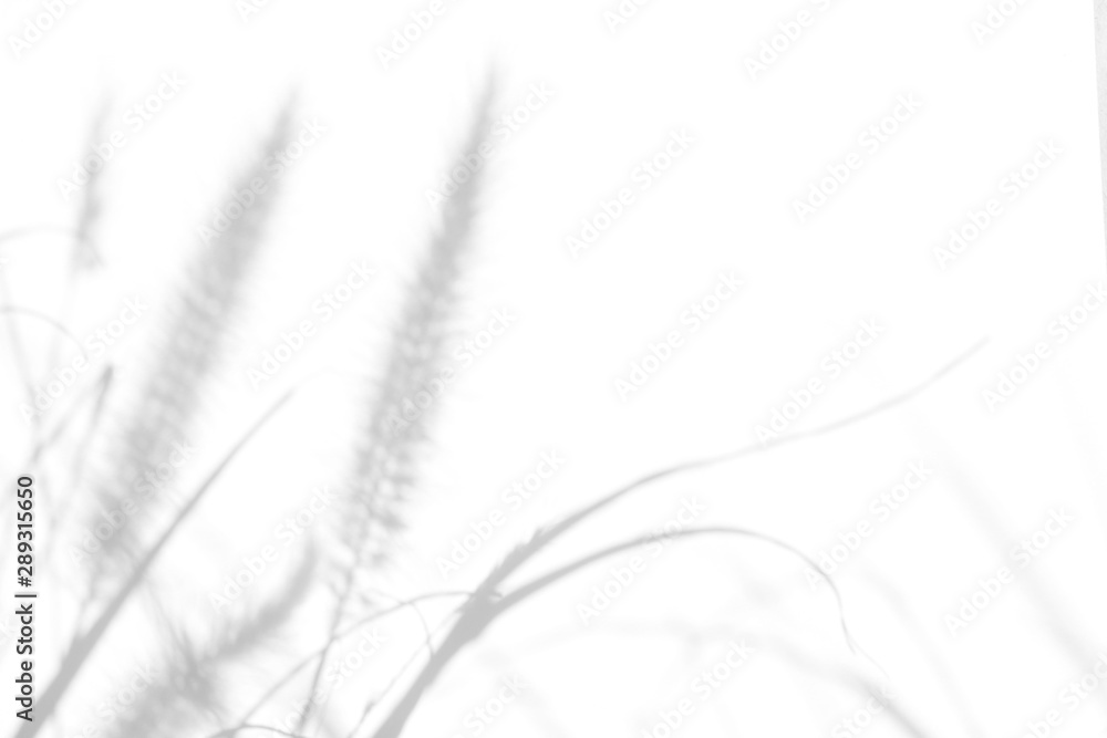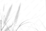 Overlay effect for photo. Gray shadows of the delicate grass on a white wall. Abstract neutral nature concept background. Space for text. Blurred, defocused.