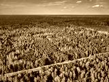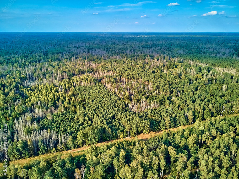 Beautiful panoramic aerial drone view to Bialowieza Forest - one of the last and largest remaining parts of the immense primeval forest that once stretched across the European Plain