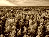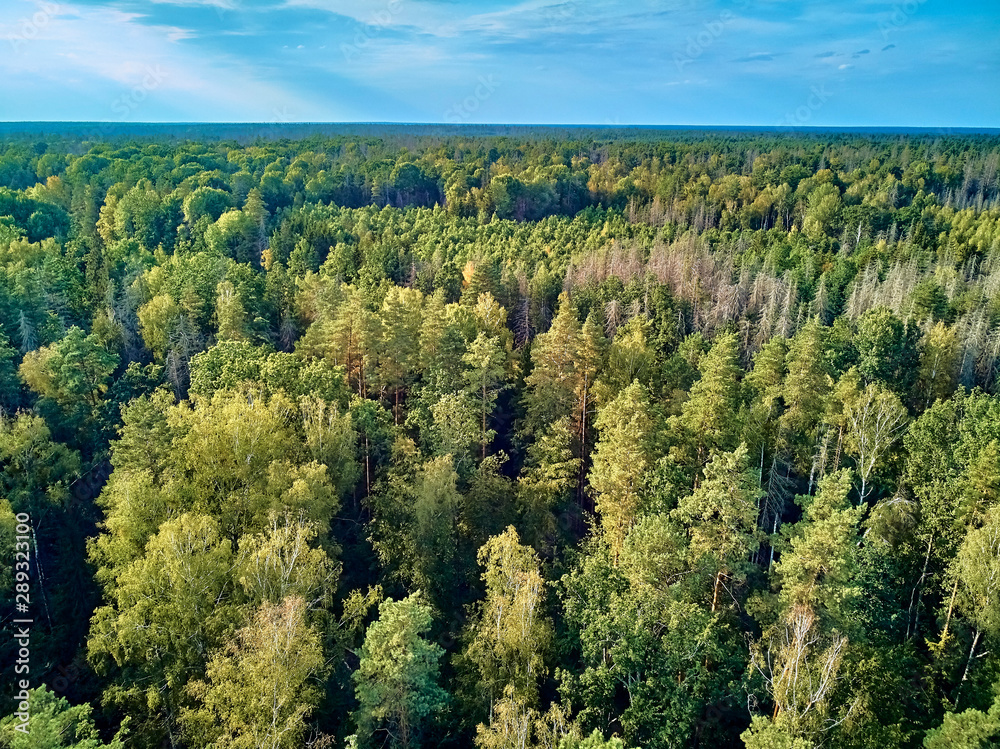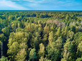 Beautiful panoramic aerial drone view to Bialowieza Forest - one of the last and largest remaining parts of the immense primeval forest that once stretched across the European Plain