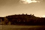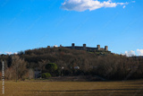 Medieval Monteriggioni fortress in Tuscany under bright blue sky