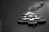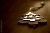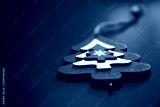 red white wood Christmas tree craft for holiday party decoration on dark green paper background