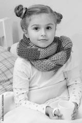 Sick little girl with hot lemon tea