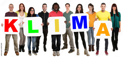 Gruppe junge Leute People halten Wort Klima Klimawandel Schüler Klimaschutz