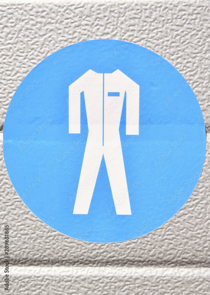 Occupational Safety and Health. Information plate "Work only in work clothes"