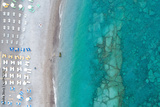 Aerial birds eye view drone photo of Elli beach on Rhodes city island, Dodecanese, Greece. Panorama with nice sand, lagoon and clear blue water. Famous tourist destination in South Europe