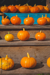 Autumn harvest halloween concept. Fall pumpkins on the stairs