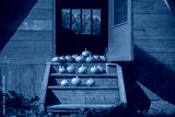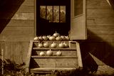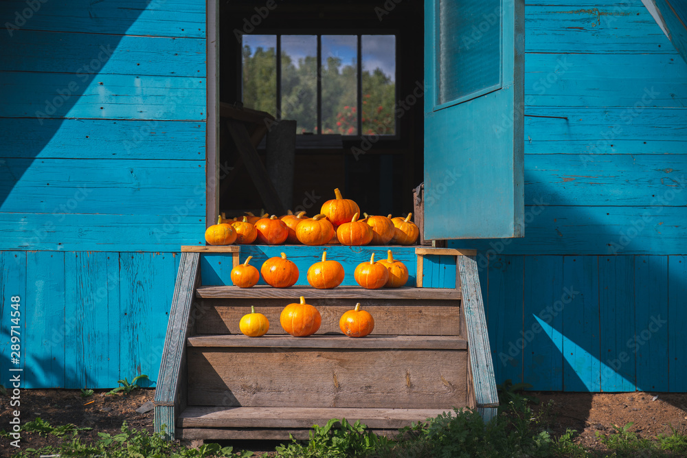 Autumn harvest halloween concept. Fall pumpkins on the stairs