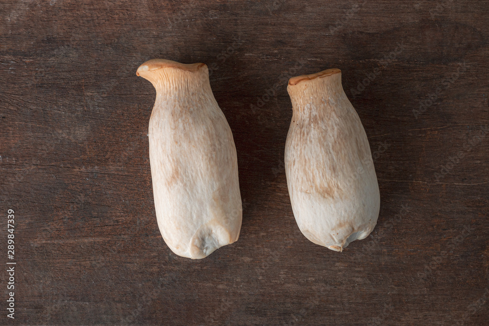 Fresh mushrooms ready for cooking shot on rustic wooden table