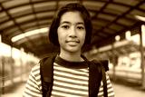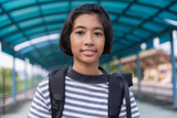 Asian kid girl is walking to school while carrying a backpack, Back to school concept