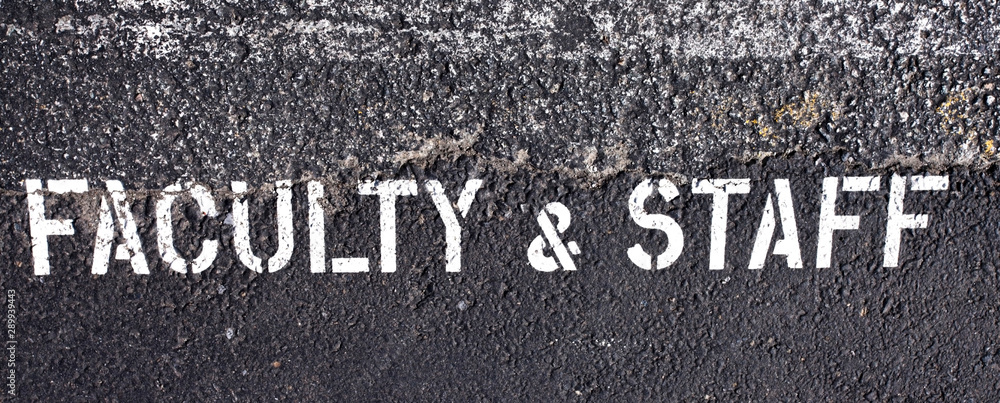 FACULTY & STAFF parking sign stenciled on parking lot asphalt.