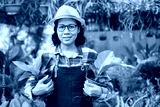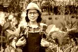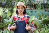 Portrait Asian woman garden holding pot plants in Ornamental plant shop, Small business concept