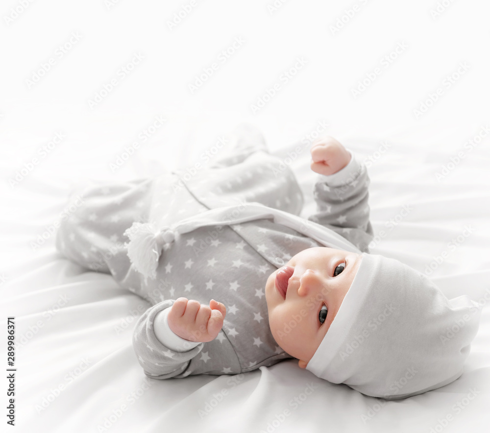 Smiling baby on the bed