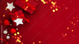 Christmas and New Year holiday background. Xmas greeting card. Christmas gifts on red background top view.