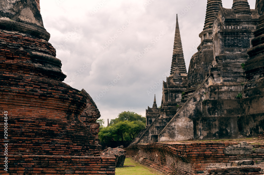 Historic City of Ayutthaya with red brick and stone facade architecture - Ancient remains of Buddhist monasteries in the old city of Siam - Travel, History and Asia concept