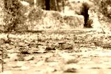 Autumn alley park landscape. Fall season nature landscape with pathway covered yellow leaves background. Selective focus
