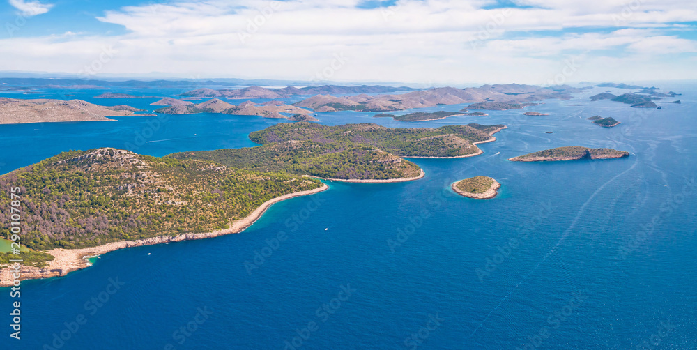 Telascica nature park and green Mir lake on Dugi Otok island aerial panoramic view