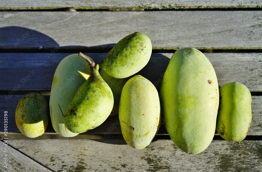 Ripe fruit of the common pawpaw (asimina triloba)