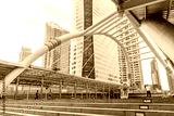 View of public sky walk at Chong Nonsi pedestrian bridge in Bangkok, Thailand