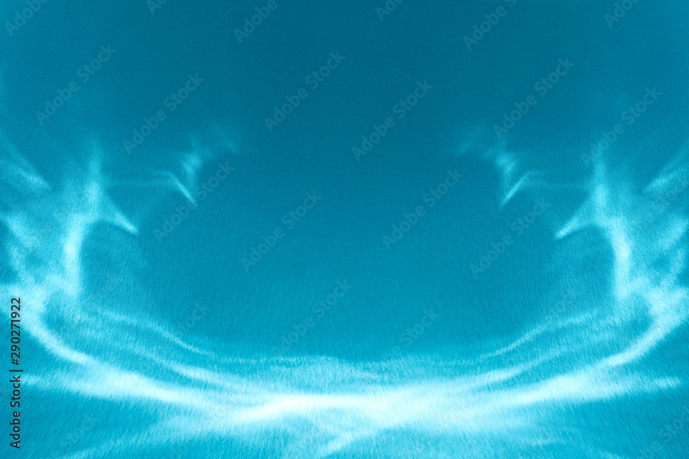 Blue colored abstract background with light and shadows caustic effect. Light passes through a glass on textured paper. Trendy abstract simple design concept. Blank product display mockup.