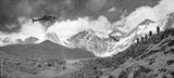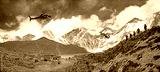 Everest base camp Gorak Shep rescue helicopters in action Himalayas Nepal, small settlement that sits at its edge at 5,164 m elevation, near Mount Everest