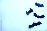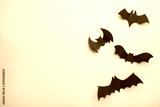Halloween paper bats on pastel pink background. Halloween concept, frame