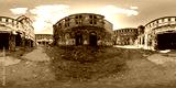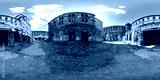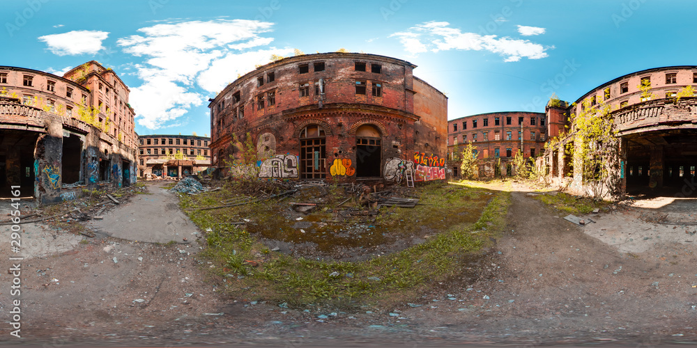 3D spherical panorama with 360 viewing angle ready for virtual reality or VR. Full equirectangular projection. ghost town. Exterior of abandoned industrial building landscape architecture of the city