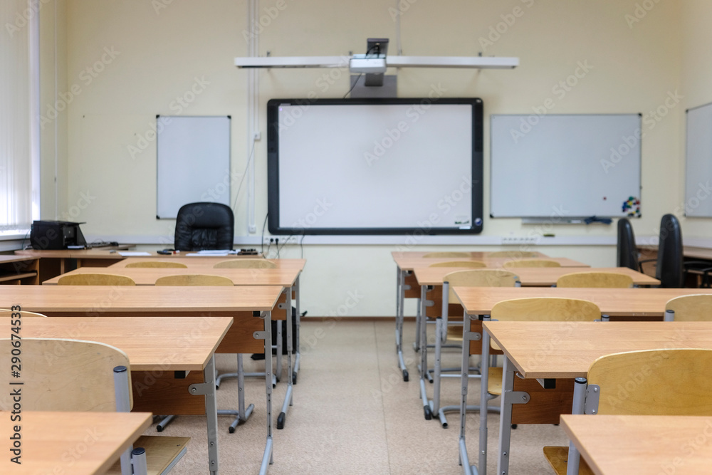 Moscow, Russia - September, 18, 2019: interior of an empty school classroom in Moscow secondary school