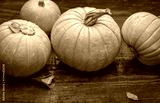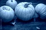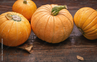 Yellow round festive pumpkins on old surface. October, Halloween. Copy space.