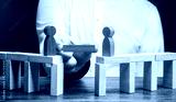 A man makes contact between people opponents. Arbitrator and mediator. Build bridges, seek a compromise in disputes and reconciliation of conflicts. Networking in business. Negotiation platform
