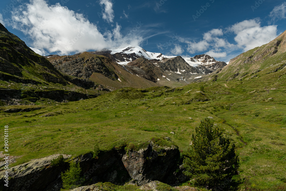 Martell valley in South Tyrol on a sunny day in summer