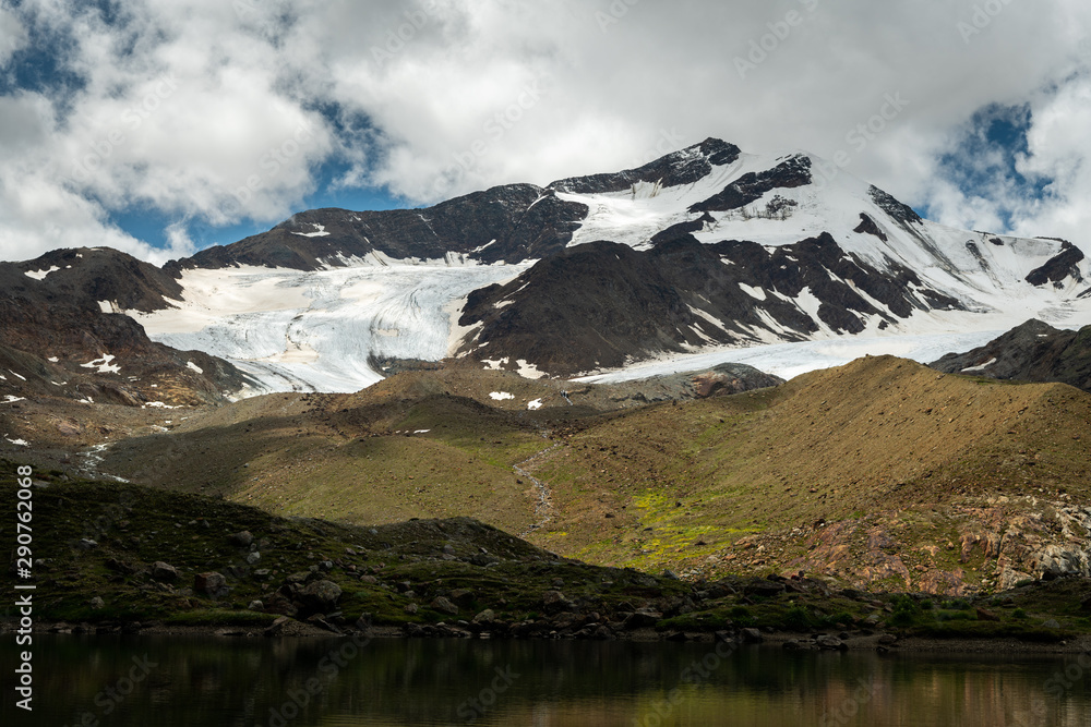 Martell valley in South Tyrol on a partly cloudy day in summer