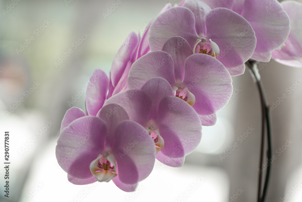 Selective focus close up beautiful purple Phalaenopsis orchids.Blurred flower background.