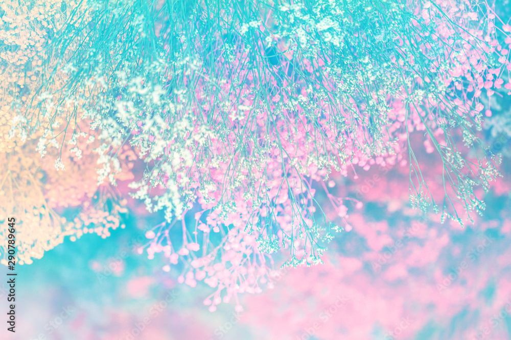 Colorful dry flowers at the roof as a decoration.Selective focus bright colored flower background.
