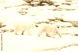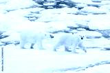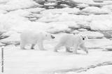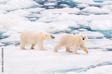 Polar bear cubs walking on the ice pack in the Arctic Circle, Barentsoya, Svalbard, Norway