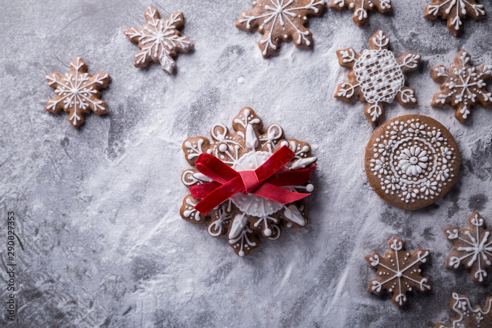 Homemade gingerbread. Traditional homemade Christmas cookies. Sugered cakes.