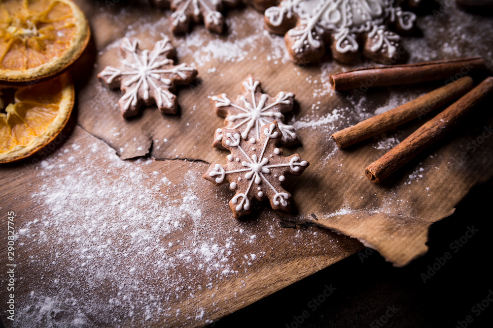 Iced gingerbreads. Traditional homemade spice cookies. Christmas cookies