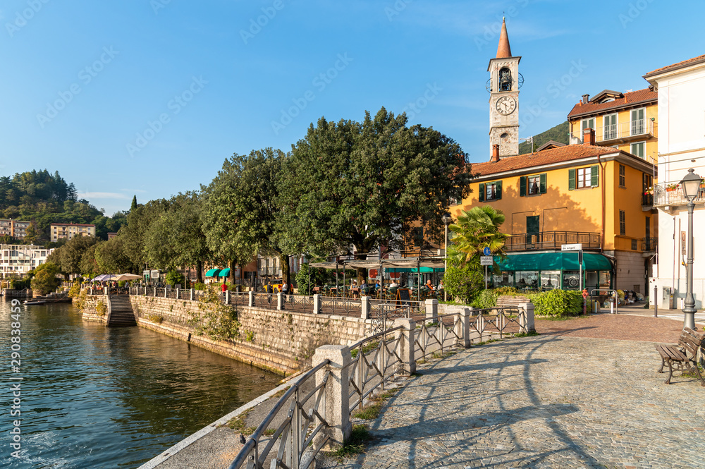 Promenade on the shore of Lake Maggiore in Laveno Mombello, province of Varese, Italy