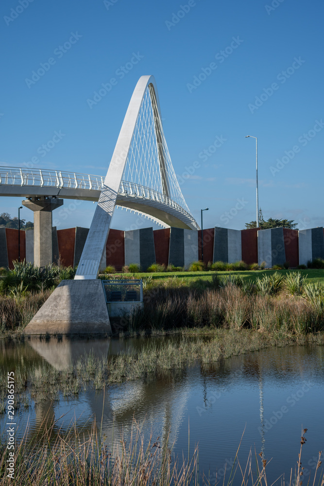 Pond and Motorway Over Bridge at Hendon Park in Auckland New Zealand