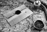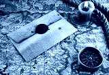 compass and an old letter on grunge background