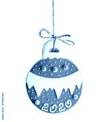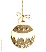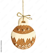 Gingerbread in a shape of a Christmas ball with text 2020 on a rope isolated on white.