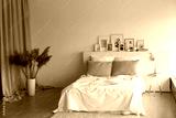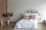 interior design bedroom pastel colors cupboard paintings