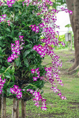 Dendrobium orchid hybrids in the garden.Selective focus beautiful purple orchid.