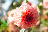 blooming pink dahlia flower in summer or spring natural sunlight background