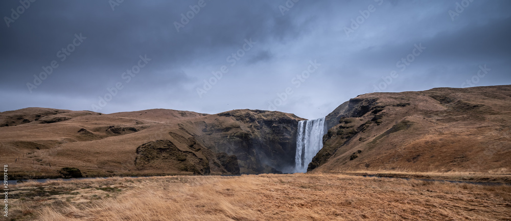 Skogafoss waterfall in Iceland in Winter.