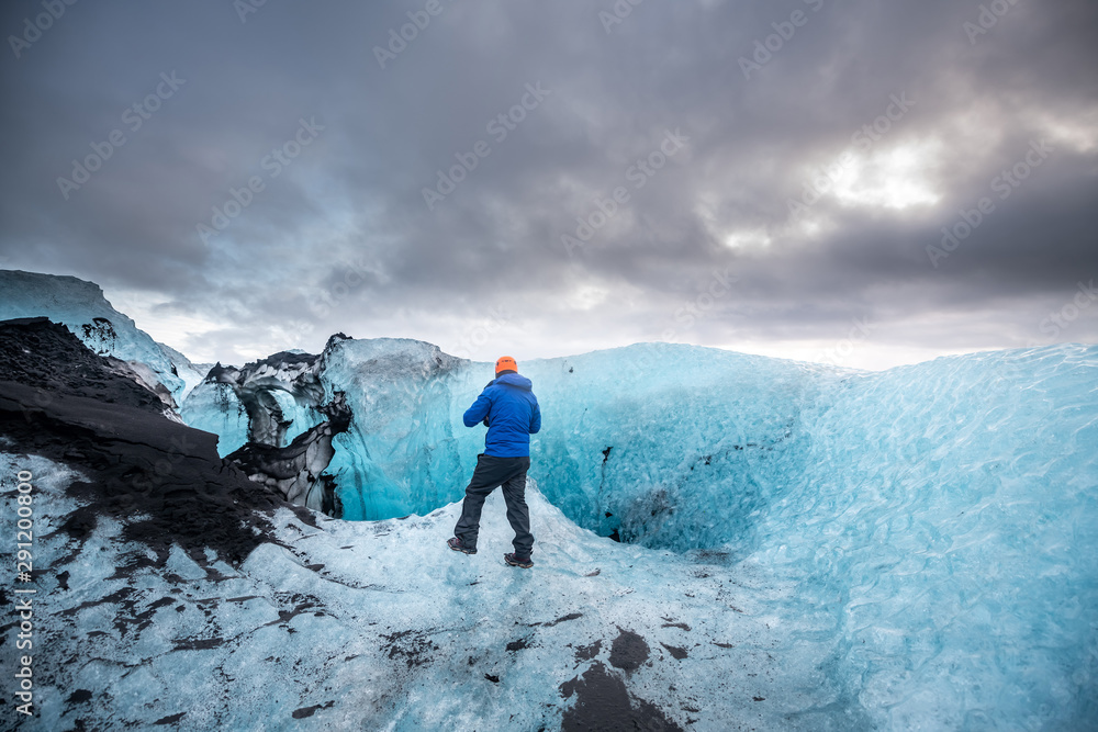 Inside a glacier ice cave in Iceland