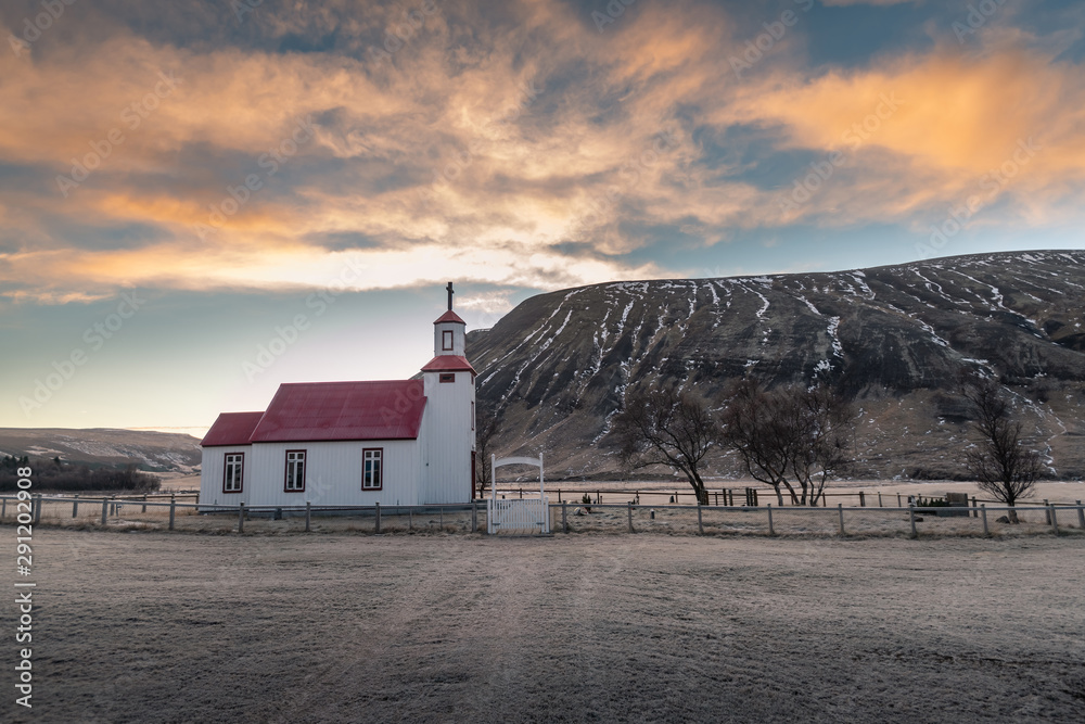 Beautiful small red church in Iceland