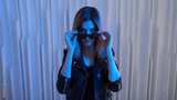 Beautiful girl dancing in retro wave on the neon light