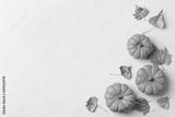 Autumn fall thanksgiving day composition with decorative orange pumpkins